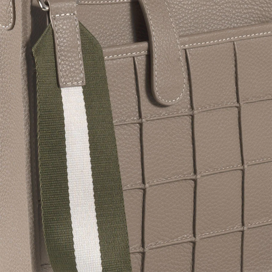 Beneath the sleek magnetic closure lies a flat pocket adorned with our signature Manhattan square pattern, along with ample space for your daily essentials. Crafted from supple calf leather, it exudes both classic charm and effortless femininity, designed for everyday sophistication.